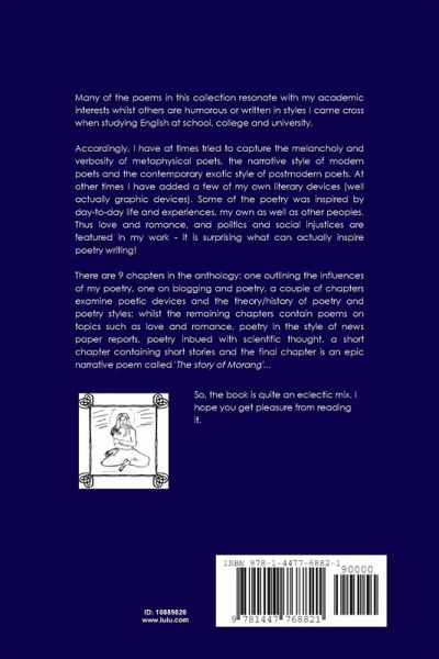 The book contains poetry theory and poetry styles such as metaphysical poetry, modernist narrative poetry and postmodernist poetry in a personal yet academic style. The latter chapters contain the author's own poetic expression. It's perfect as a reader for literary courses or just to read for the love of poetry!