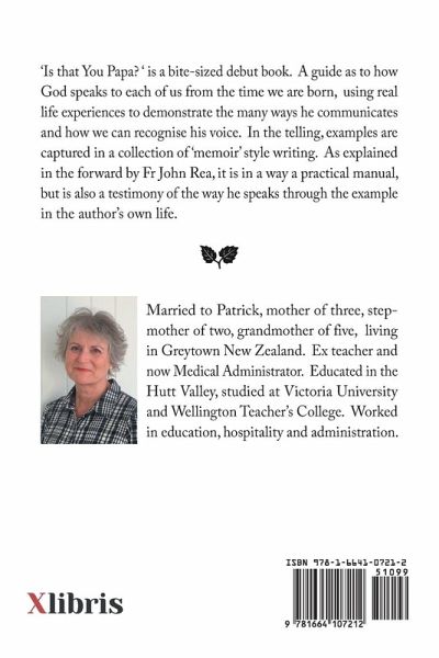 'Is that You Papa? ' is a bite-sized debut book. A guide as to how God speaks to each of us from the time we are born, using real life experiences to demonstrate the many ways he communicates and how we can recognise his voice. In the telling, examples are captured in a collection of 'memoir' style writing. As explained in the forward by Fr John Rea, it is in a way a practical manual, but is also a testimony of the way he speaks through the example in the author's own life.