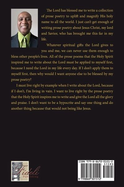 The Lord has blessed me to write a collection of prose poetry to uplift and magnify His holy name to all the world. I just can't get enough of writing prose poetry about Jesus Christ, my Lord and Savior, who has brought me this far in my life. Whatever spiritual gifts the Lord gives to you and me, we can never use them enough to bless other people's lives. All of the prose poems that the Holy Spirit inspired me to write about the Lord must be applied to myself first, because I need the Lord in my life every day. If I don't apply them to myself first, then why would I want anyone else to be blessed by my prose poetry? I must live right by example when I write about the Lord, because if I don't, I'm living in vain. I want to live right by the prose poetry that the Holy Spirit inspires me to write and give the Lord all the glory and praise. I don't want to be a hypocrite and say one thing and do another thing because that would not being like Jesus.