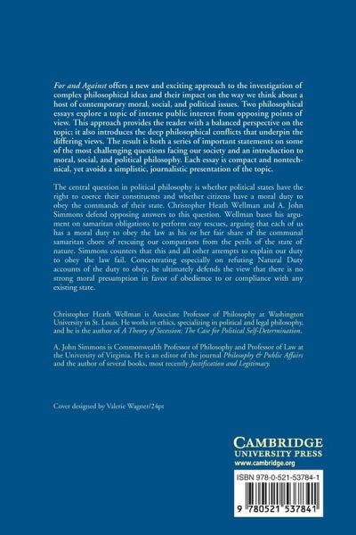 "Both participants have played important parts in the debate over political obligation...and each is eminently qualified to represent his side in the narrower debate that takes place between the covers of their coauthored book...One conclusion seems absolutely clear: the book itself is a winner...Wellman and Simmons both deserve praise for the clarity of their writing and the rigor of their arguments, the result of which is a book that is simultaneously accessible to advanced undergraduates and "must reading" for political philosophers with an interest in the problem of political obligation."