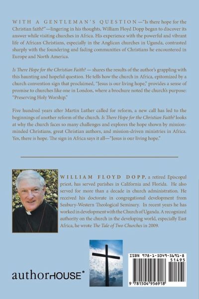 With a gentleman's question-"Is there hope for the Christian faith?"-lingering in his thoughts, William Floyd Dopp began to discover its answer while visiting churches in Africa. His experience with the powerful and vibrant life of African Christians, especially in the Anglican churches in Uganda, contrasted sharply with the foundering and fading communities of Christians he encountered in Europe and North America. Is There Hope for the Christian Faith? - shares the results of the author's grappling with this haunting and hopeful question. He tells how the church in Africa, epitomized by a church convention sign that proclaimed, "Jesus is our living hope," provides a sense of promise to churches like one in London, where a brochure noted the church's purpose: "Preserving Holy Worship." Five hundred years after Martin Luther called for reform, a new call has led to the beginnings of another reform of the church. Is There Hope for the Christian Faith? looks at why the church faces so many challenges and explores the hope shown by mission-minded Christians, great Christian authors, and mission-driven ministries in Africa. Yes, there is hope. The sign in Africa says it all-"Jesus is our living hope."