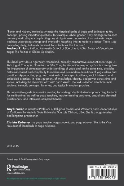 This book provides a rigorously researched, critically comparative introduction to yoga. Is This Yoga? Concepts, Histories, and the Complexities of Contemporary Practice recognizes the importance of contemporary understandings of yoga and, at the same time, provides historical context and complexity to modern and pre-modern definitions of yogic ideas and practices. Approaching yoga as a vast web of concepts, traditions, social interests, and embodied practices, it raises questions of knowledge, identity, and power across time and space, including the dynamics of "East" and "West." The text is divided into three main sections: thematic concepts; histories; and topics in modern practice.