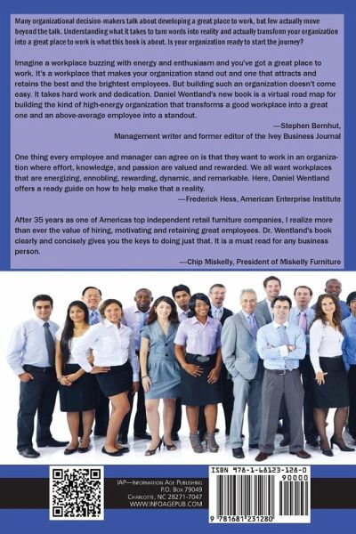 In this book, the chapters are designed to move us towards a complete understanding of what a great place to work is, how to develop such an organization, and how to measure whether your organization is a great place to work. The writing is concise and straightforward, and the book details how to increase the probability of organizational sustainability and how to develop a better awareness of who we are, for not every person wants to create a great place to work. Many organizational decision makers and practitioners talk about developing a great place to work, but few actually move beyond the talk. It is very common for individuals in positions of power to make statements about how great it is to work in the organization, while the rest of the employees know the "real" work situation.