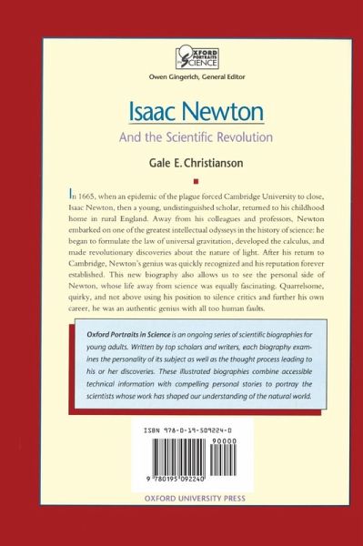 In 1665, when an epidemic of the plague forced Cambridge University to close, Isaac Newton, then a young, undistinguished scholar, returned to his childhood home in rural England. Away from his colleagues and professors, Newton embarked on one of the greatest intellectual odysseys in the history of science: he began to formulate the law of universal gravitation, developed the calculus, and made revolutionary discoveries about the nature of light. After his return to Cambridge, Newton's genius was quickly recognized and his reputation forever established. This biography also allows us to see the personal side of Newton, whose life away from science was equally fascinating. Quarrelsome, quirky, and not above using his position to silence critics and further his own career, he was an authentic genius with all too human faults. Oxford Portraits in Science is an on-going series of scientific biographies for young adults. Written by top scholars and writers, each biography examines the personality of its subject as well as the thought process leading to his or her discoveries. These illustrated biographies combine accessible technical information with compelling personal stories to portray the scientists whose work has shaped our understanding of the natural world.