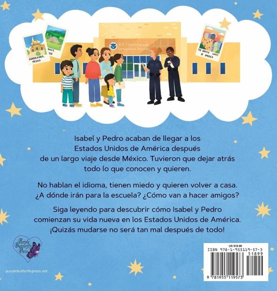 Isabel y Pedro acaban de llegar a los Estados Unidos de América después de un largo viaje desde México. Tuvieron que dejar atrás todo lo que conocen y quieren. No hablan el idioma, tienen miedo y quieren volver a casa. ¿A dónde irán para la escuela? ¿Cómo van a hacer amigos? Siga leyendo para descubrir cómo Isabel y Pedro comienzan su vida nueva en los Estados Unidos de América. ¡Quizás mudarse no será tan mal después de todo!