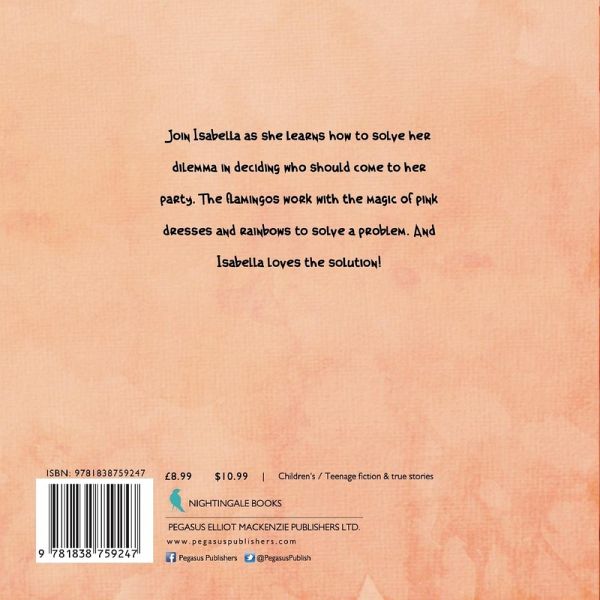 Join Isabella as she learns how to solve her dilemma in deciding who should come to her party. The flamingos work with the magic of pink dresses and rainbows to solve a problem. And Isabella loves the solution!