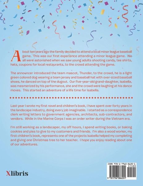 About ten years ago the family decided to attend a local minor league baseball game. This was our first experience attending a minor league game. We all were astonished when we saw young adults shooting candy, tee shirts, hats, coupons for local restaurants, to the crowd attending the game. The announcer introduced the team mascot, Thunder, to the crowd, he is a light green colored dog wearing a team jersey and baseball hat with over-sized baseball shoes, he danced on top of the dugout. Our five-year-old grand-daughter, Isabella, was mesmerized by his performance, she and the crowd were laughing at his dance moves. This started an adventure of a life time for Isabella.