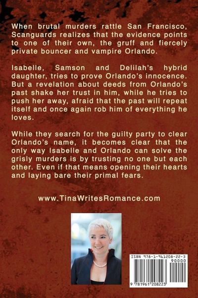 When brutal murders rattle San Francisco, Scanguards realizes that the evidence points to one of their own, the gruff and fiercely private bouncer and vampire Orlando. Isabelle, Samson and Delilah's hybrid daughter, tries to prove Orlando's innocence. But a revelation about deeds from Orlando's past shake her trust in him, while he tries to push her away, afraid that the past will repeat itself and once again rob him of everything he loves. While they search for the guilty party to clear Orlando's name, it becomes clear that the only way Isabelle and Orlando can solve the grisly murders is by trusting no one but each other. Even if that means opening their hearts and laying bare their primal fears. ¿¿ ¿¿ ¿¿ ¿¿ ¿¿ Lara Adrian, New York Times Bestselling Author of the Midnight Breed series: "I'm addicted to Tina Folsom's books! The Scanguards® series is one of the hottest things to happen to vampire romance. If you love scorching, fast-paced reads, don't miss this thrilling series!" ABOUT THE SERIES The Scanguards Vampires series is full of fast-paced action, scorching love scenes, witty dialogue, and strong heroes and heroines. Vampire Samson Woodford lives in San Francisco and owns a security/bodyguard company, Scanguards, which employs both vampires and humans. And eventually some witches. Throw in a few immortal guardians and demons later in the series, and you'll get the drift! Each book can be read as a standalone and always centers around a new couple finding love, but the series is more enjoyable when read in order. Scanguards Vampires: Book 1: Samson's Lovely Mortal Book 2: Amaury's Hellion Book 3: Gabriel's Mate Book 4: Yvette's Haven Book 5: Zane's Redemption Book 6: Quinn's Undying Rose Book 7: Oliver's Hunger Book 8: Thomas's Choice Book 8 1/2: Silent Bite Book 9: Cain's Identity Book 10: Luther's Return Novella: Mortal Wish Book 11: Blake's Pursuit Novella 11 1/2: Fateful Reunion Book 12: John's Yearning Book 13: Ryder's Storm (Scanguards Hybrids #1) Book 14: Damian's Conquest (Scanguards Hybrids #2) Book 15: Grayson's Challenge (Scanguards Hybrids #3) Book 16: Isabelle's Forbidden Love (Scanguards Hybrids #4) Thriller (T.R. Folsom) Eyewitness Stealth Guardians Lover Uncloaked (#1) Master Unchained (#2) Warrior Unraveled (#3) Guardian Undone (#4) Immortal Unveiled (#5) Protector Unmatched (#6) Demon Unleashed (#7) Code Name Stargate Ace on the Run (#1) Fox in plain Sight (#2) Yankee in the Wind (#3) Tiger on the Prowl (#4) Venice Vampyr Venice Vampyr (#1) Venice Vampyr (#2): Final Affair Venice Vampyr (#3): Sinful Treasure Venice Vampyr (#4): Sensual Danger Out of Olympus Book 1: A Touch of Greek Book 2: A Scent of Greek Book 3: A Taste of Greek Book 4: A Hush of Greek The Scanguards Vampires series has it all: love at first sight, enemies to lovers, meet cute, instalove, alpha hero, fated mates, bodyguard, band of brothers, damsel in distress, woman in peril, beauty and the beast, hidden identity, soul mates, first love, virgins, tortured hero, age gap, second chance love, grieving lover, return from the dead, secret baby, playboy, kidnappings, friends to lovers, coming out, secret admirer, last to know, unrequited love, amnesia, royalty, forbidden love.