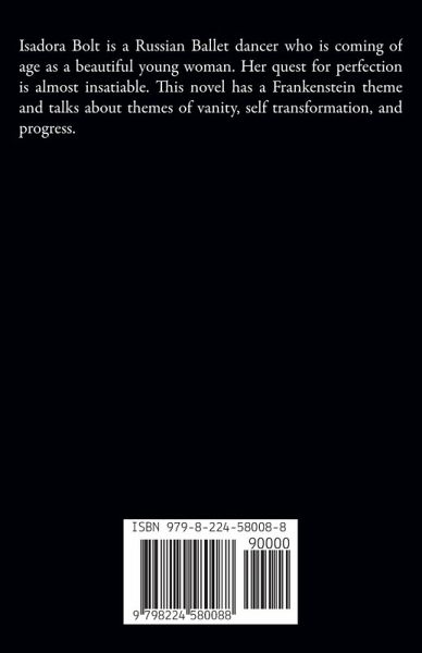 Isadora Bolt is a Russian Ballet dancer who is coming of age as a beautiful young woman. Her quest for perfection is almost insatiable. This novel has a Frankenstein theme and talks about themes of vanity, self transformation, and progress.