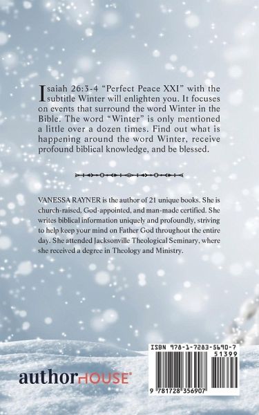 Isaiah 26:3-4 "Perfect Peace XXI" with the subtitle Winter will enlighten you. It focuses on events that surround the word Winter in the Bible. The word "Winter" is only mentioned a little over a dozen times. Find out what is happening around the word Winter, receive profound biblical knowledge, and be blessed.