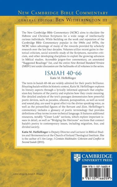 Aimed at interested non-specialists and clergy, this text delights in Isaiah 40â 66's poetic brilliance, exploring its poetic features and encounters with diverse voices, including the Divine Voice, Servant, and Zion. Bridging the Horizons sections connect Isaiah's lyric to issues including migration, fear, poetic formation and divided society.