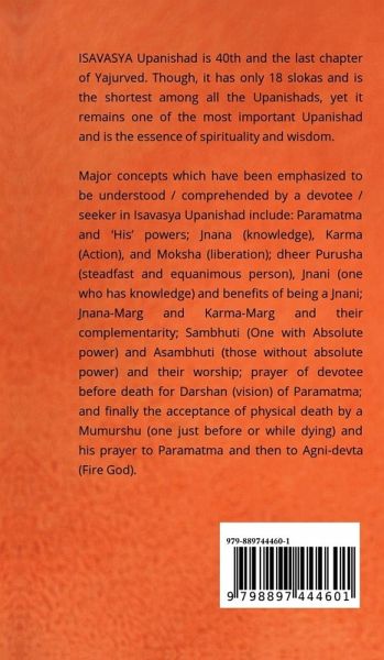 Isavasya Upanishad is 40th and last chapter of Yajurveda and is considered the first Upanishad. Though it is the smallest Upanishad with only 18 slokas, yet it contains the essence of the Vedic philosophy and spiritual wisdom. It remains one of the most profound spiritual as well as religious teaching and is spiritually very useful for every human being, irrespective of his/her faith/religion. The first sloka of this Upanishad contains the word 'Isavasyam', so it has been named Isavasya Upanishad. 'Ish or Isa' signifies Ishwar i.e. Paramatma, the Supreme or the Universal Soul and 'vasyam' means pervaded by; thereby 'Isavasyam' meaning that 'everything in this universe is pervaded by the Ishwar or the Paramatma'. 'Isavasya Upanishad: Essence of Wisdom' is an attempt by an Alpagya seeker to explain this sacred text to all his known and unknown fellow seekers / devotees and is a sincere call to join on this sacred and ultimate journey of human life. About the Commentator: Raj Bhambu has donned various hats i.e. of being an Indian Army Officer, a Banker, and Corporate Leader in MNCs, an Entrepreneur, Strategy Consultant and an Author. He has penned 5 books prior to this, including 4 co-authored with his sister Anshu and the last one 'Teachings of The Ribhu Geeta' being a solo attempt. AUM TAT SAT AUM
