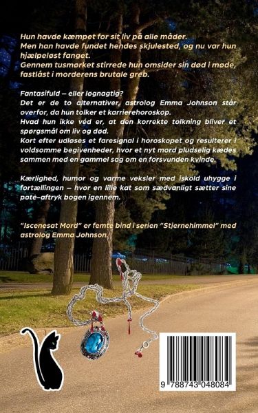 Hun havde kæmpet for sit liv på alle måder. Men han havde fundet hendes skjulested, og nu var hun hjælpeløst fanget. Gennem tusmørket stirrede hun omsider sin død i møde, fastlåst i morderens brutale greb. Fantasifuld - eller løgnagtig? Det er de to alternativer, astrolog Emma Johnson står overfor, da hun tolker et karrierehoroskop. Hvad hun ikke véd er, at den korrekte tolkning bliver et spørgsmål om liv og død. Kort efter udløses et faresignal i horoskopet og resulterer i voldsomme begivenheder, hvor et nyt mord pludselig kædes sammen med en gammel sag om en forsvunden kvinde. Kærlighed, humor og varme veksler med iskold uhygge i fortællingen - hvor en lille kat som sædvanlig sætter sine pote-aftryk bogen igennem. "Iscenesat Mord" er femte bind i serien "Stjernehimmel" med astrolog Emma Johnson.