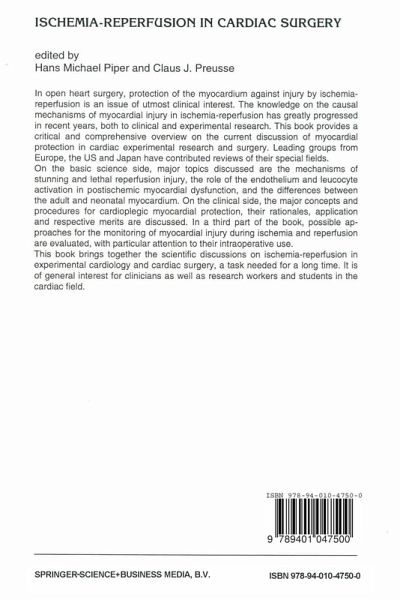 This book brings together the scientific discussions on ischemia-reperfusion in experimental cardiology and cardiac surgery, a task needed for a long time. It is of general interest for clinicians as well as research workers and students in the cardiac field.