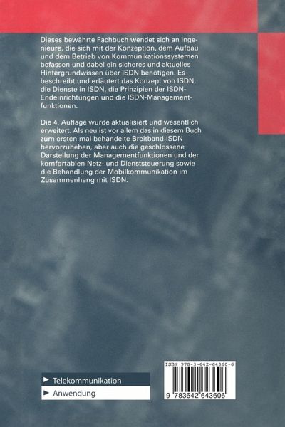 Dank seiner Universalität und Wirtschaftlichkeit hat das diensteintegrierende digitale Kommunikationsnetz ISDN weltweit eine herausragende Bedeutung erreicht. Die vorliegende vierte Auflage des erfolgreichen Titels behandelt erstmals das Konzept und die Systeme des inzwischen international standardisierten Breitband-ISDN (B-ISDN). Eine geschlossene Darstellung der Managementfunktionen im ISDN und die Behandlung der Mobilkommunikation in Verbindung mit ISDN bringen das Buch auf den neuesten Stand. Das Buch richtet sich nicht nur an den Ingenieur, der für die Konzeption, den Aufbau und den Betrieb von Kommunikationssystemen verantwortlich ist, sondern vermittelt auch dem technisch interessierten Leser Hintergründe und Zusammenhänge.