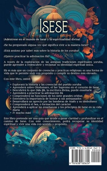¡Adéntrese en el mundo de Isese y la espiritualidad divina! ¿Se ha preguntado alguna vez qué significa vivir a la manera Isese? ¿Está ansioso por saber más sobre la historia de los yoruba? ¿Quiere practicar la adivinación Ifá? A través de la exploración de las antiguas tradiciones espirituales yoruba, puede aprender a redescubrir y reclamar su identidad espiritual única.Ifá es más que un conjunto de creencias y prácticas religiosas: es una forma de vida que le permite vivir con propósito y cumplir su destino más elevado. Con este libro, usted:Explorará la historia y las creencias del pueblo yoruba Aprenderá sobre Olodumare, el Ser Supremo en el corazón de Isese Descubrirá lo que Odu Ifá, la escritura divina, puede enseñarle Aprenderá a practicar la adivinación Ifá Comprenderá las funciones de los siete grandes orishas Entenderá la importancia de honrar a sus antepasados Desarrollará un aprecio por las banderas de Asafo y su simbolismo Comprenderá el Iwa, o formación del carácter Aprenderá a aplicar las enseñanzas y los principios de Isese en su vida diaria ¡Y mucho más! Este libro pretende ser una guía que ayude a ganar claridad y profundizar en el camino de Isese. Con este conocimiento, podrá recuperar su identidad espiritual y vivir una vida con sentido y propósito.