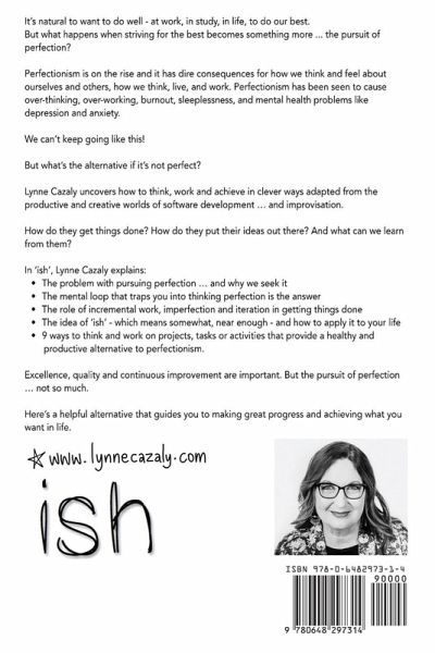 It’s natural to want to do well - at work, in study, in life, to do our best. But what happens when striving for the best becomes something more ... the pursuit of perfection? Perfectionism is on the rise and it has dire consequences for how we think and feel about ourselves and others, how we think, live, and work. Perfectionism has been seen to cause over-thinking, over-working, burnout, sleeplessness, and mental health problems like depression and anxiety. We can’t keep going like this! But what’s the alternative if it’s not perfect? Lynne Cazaly uncovers how to think, work and achieve in clever ways adapted from the productive and creative worlds of software development … and improvisation. How do they get things done? How do they put their ideas out there? And what can we learn from them? In ‘ish’, Lynne Cazaly explains: - The problem with pursuing perfection … and why we seek it - The mental loop that traps you into thinking perfection is the answer - The role of incremental work, imperfection and iteration in getting things done - The idea of ‘ish’ - which means somewhat, near enough - and how to apply it to your life - 9 ways to think and work on projects, tasks or activities that provide a healthy and productive alternative to perfectionism. Excellence, quality and continuous improvement are important. But the pursuit of perfection … not so much. Here’s a helpful alternative that guides you to making great progress and achieving what you want in life.