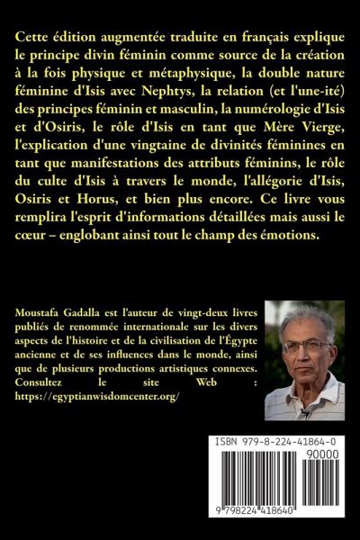 Expliquer le principe divin féminin, métaphysique et physique, et une vingtaine d'attributs féminins manifestés. Cette édition augmentée traduite en français explique le principe divin féminin comme source de la création à la fois physique et métaphysique, la double nature féminine d'Isis avec Nephtys, la relation (et l'une-ité) des principes féminin et masculin, la numérologie d'Isis et d'Osiris, le rôle d'Isis en tant que Mère Vierge, l'explication d'une vingtaine de divinités féminines en tant que manifestations des attributs féminins, le rôle du culte d'Isis à travers le monde, l'allégorie d'Isis, Osiris et Horus, et bien plus encore. Ce livre vous remplira l'esprit d'informations détaillées mais aussi le cur - englobant ainsi tout le champ des émotions. Cette Édition Augmentée du livre est divisée en huit chapitres et trois appendices. Chapitre1: la Mère de la Création comprend le rôle d'Isis lors de la séquence de création, comme un reflet de la totalité de la création, sa relation à Rê et Osiris. Chapitre 2: La Dualité d'Isis comprend sa double nature de base en tant qu'Intellect Divin de même que dans le cycle de création et en tant que matrice universelle. Chapitre 3: Isis & Osiris-Le Duo Dynamique comprend les rôles combinés d'Isis et Osiris lors du développement et de la génération de toutes les créations de l'univers. Chapitre 4: Isis: la Vierge Mère de ''Dieu'' comprend son rôle dans la Divine et Immaculée Conception de son fils Horus, le concept de Virginité, sa fuite et sa mise à l'abri-avec son nouveau-né-des menaces des forces du Mal, et le sacrifice de la vie de son fils. Chapitre 5: La Numérologie d'Isis & Osiris comprend les nombres d'Isis et Osiris 2 et 3-étant les nombres Premiers de la création et de la croissance; et comment ces deux nombres génèrent toutes formes et volumes, l'harmonie musicale et les rythmes de l'univers. Chapitre 6: Isis et la Multitude de Ses Attributs comprend seize divinités féminines-comme la manifestation d'Isis en tant que principe féminin de l'univers créé. Chapitre 7: L'Aimée dans tous les Pays comprend la diffusion à travers le monde de la religion égyptienne; comment de telles croyances survivent dans le christianisme ; et comment les fêtes religieuses de l'ancienne Égypte en rapport avec Isis furent adoptées par le christianisme pour Marie exactement aux mêmes dates que celles du calendrier égyptien. Chapitre 8: Le Pouvoir du Cur comprend l'éternel et puissant impact d'Isis sur une humanité à la recherche de réconfort et du remède universel. Appendice 1: Cosmologie Égyptienne et Allégories comprend comment des allégories habilement composées sont le meilleur - sinon le seul - moyen de transmettre des sujets complexes de sorte que l'information soit accessible à tous. Appendice 2: L'Allégorie Égyptienne Universelle - Isis et Osiris comprend une version abrégée de l'histoire de l'allégorie égyptienne d'Isis et Osiris, avec un accent mis sur le rôle d'Isis, en tant que principe féminin du divin, manifestations and applications. Le récit est effectué en parties séparées, et chaque partie est suivie par une brève évaluation métaphysique de cette partie. Appendice 3: Cur et Âme : Réflexions Métaphysiques comprend les aspects métaphysiques du cur (Isis) et de l'âme (Osiris) et comment un être humain est capable de réaliser l'intégration du cur et de l'âme en dedans de soi.