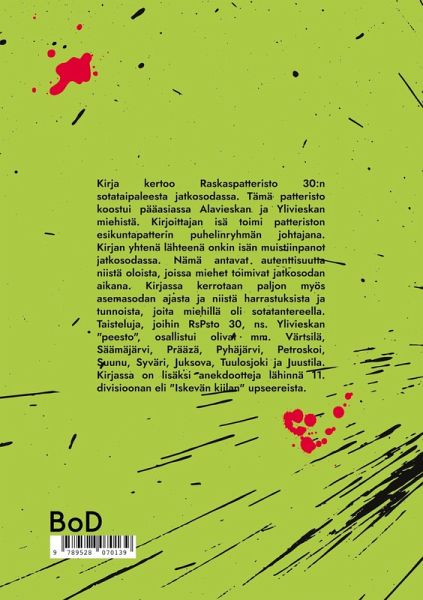 Kirja kertoo Raskaspatteristo 30:n sotataipaleesta jatkosodassa. Tämä patteristo koostui pääasiassa Alavieskan ja Ylivieskan miehistä. Kirjoittajan isä toimi patteriston esikuntapatterin puhelinryhmän johtajana. Kirjan yhtenä lähteenä onkin isän muistiinpanot jatkosodassa. Nämä antavat autenttisuutta niistä oloista, joissa miehet toimivat jatkosodan aikana. Kirjassa kerrotaan paljon myös asemasodan ajasta ja niistä harrastuksista ja tunnoista, joita miehillä oli sotatantereella. Taisteluja, joihin RsPsto 30, ns. Ylivieskan "peesto", osallistui olivat mm. Värtsilä, Säämäjärvi, Prääzä, Pyhäjärvi, Petroskoi, Suunu, Syväri, Juksova, Tuulosjoki ja Juustila. Kirjassa on lisäksi anekdootteja lähinnä 11. divisioonan eli "Iskevän kiilan" upseereista.