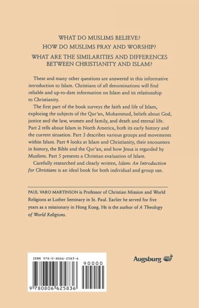 These and many other questions are answered in this informative introduction to Islam. Christians of all denominations will find reliable and up-to-date information on Islam and its relationship to Christianity. The first part of the book surveys the faith and life of Islam, exploring the subjects of the Quran, Muhammad, beliefs about God, justice and the law, women and family, and death and eternal life. Part 2 tells about Islam in North America, both its early history and the current situation. Part 3 describes various groups and movements within Islam. Part 4 looks at Islam and Christianity, their encounters in history, the Bible and the Quran, and how Jesus is regarded by Muslims. Part 5 presents a Christian evaluation of Islam. Carefully researched and clearly written, Islam: An Introduction for Christians is an ideal book for both individual and group use.