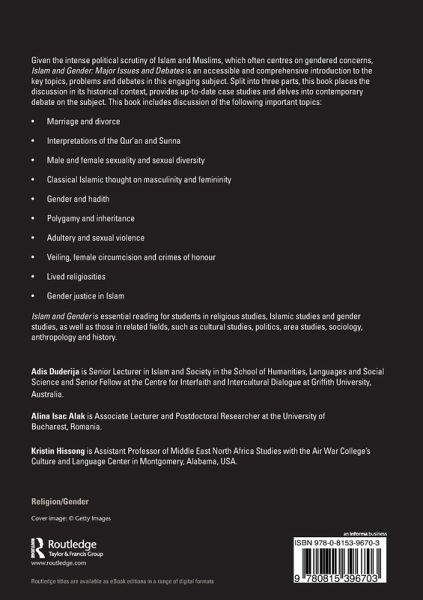 Given the intense political scrutiny of Islam and Muslims, which often centres on gendered concerns, Islam and Gender: Major Issues and Debates is an accessible and comprehensive introduction to the key topics, problems and debates in this engaging subject. Split into three parts, this book places the discussion in its historical context, provides up-to-date case studies and delves into contemporary debate on the subject. This book includes discussion of the following important topics: Marriage and divorce Interpretations of the Qur'an and Sunna Male and female sexuality and sexual diversity Classical Islamic thought on masculinity and femininity Gender and hadith Polygamy and inheritance Adultery and sexual violence Veiling, female circumcision and crimes of honour Lived religiosities Gender justice in Islam. Islam and Gender is essential reading for students in religious studies, Islamic studies and gender studies, as well as those in related fields, such as cultural studies, politics, area studies, sociology, anthropology and history.