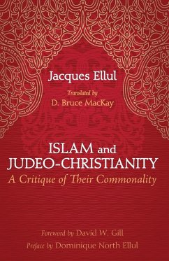 The theme of Islam and Judeo-Christianity is the relationship between these three faiths under three headings that are often promoted as a basis for commonality between them (sons of Abraham, monotheism, and religions of the book). Ellul incisively critiques these expressions, finding less common ground than is generally accepted and a pattern of conformism. The English edition of Islam and Judeo-Christianity includes a foreword by David Gill and Dominique North Ellul, and Alain Besancon's extensive foreword to the French edition of Islam and Judeo-Christianity (relocated to the appendices in this edition). The book also includes other writings on this theme by Ellul: Firstly, chapter 5 from Ellul's Subversion of Christianity where ""Islam is portrayed as a non-progressive, totalitarian religion, founded on the concept of divine right, and credited with having introduced into Christianity the idea of holy war."" Secondly, Ellul's foreword to The Dhimmi: Jews and Christians under Islam written by Bat Ye'or (1985), which documents the conditions of Jews and Christians in Muslim society. Thirdly, Ellul's foreword to The Decline of Eastern Christianity under Islam: From Jihad to Dhimmitude, also by Bat Ye'or (1996), which further explores the history of Jews and Christians under Islam.