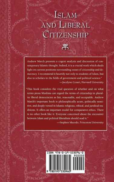 Some argue that Muslims have no tradition of separation of church and state and therefore can't participate in secular, pluralist society. At the other extreme, some Muslims argue that it is the duty of all believers to resist western forms of government and to impose Islamic law. Andrew F. March demonstrates that there are very strong and authentically Islamic arguments for accepting the demands of citizenship in a liberal democracy, many of them found even in medieval works of Islamic jurisprudence. In fact, he shows, it is precisely the fact that Rawlsian political liberalism makes no claims to metaphysical truth that makes it appealing to Muslims.…mehr