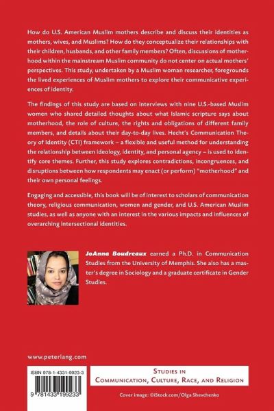 How do U.S. American Muslim mothers describe and discuss their identities as mothers, wives, and Muslims? How do they conceptualize their relationships with their children, husbands, and other family members? Often, discussions of motherhood within the mainstream Muslim community do not center on actual mothers' perspectives. This study, undertaken by a Muslim woman researcher, foregrounds the lived experiences of Muslim mothers to explore their communicative experiences of identity.