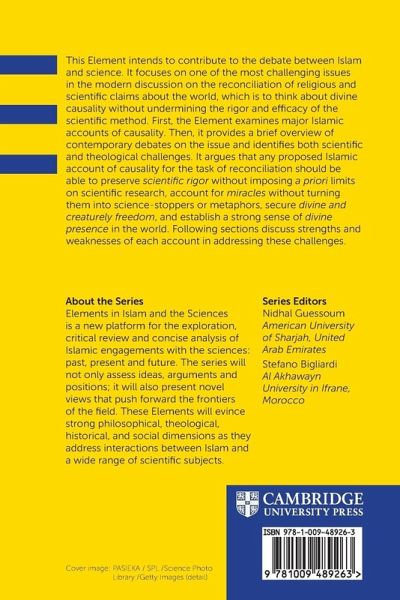 This Element examines accounts of causality by Muslim theologians, philosophers, and mystics, including Mu'tazilite, Islamic occasionalist, and Islamic participatory accounts. It explores viable options for understanding divine causality without undermining scientific methodology, and whether they can reconcile religious and scientific claims.