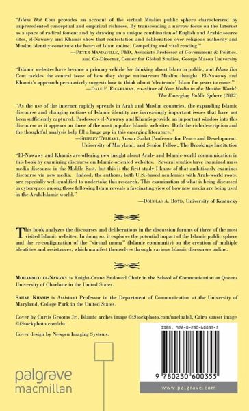 'Islam dot com provides an account of the virtual Muslim public sphere characterized by unprecedented conceptual and empirical richness. By transcending a narrow focus on the Internet as a space of radical foment and by drawing on a unique combination of English and Arabic source sites, Nawawy and Khamis show that contestation and deliberation over religious authority and Muslim identity constitute the heart of Islam online. Compelling and vital reading.' - Peter Mandaville, PhD, Associate Professor of Government & Politics, Co-Director, Center for Global Studies, George Mason University, USA
