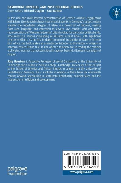 In this rich and multi-layered deconstruction of German colonial engagement with Islam, Jörg Haustein shows how imperial agents in Germany's largest colony wielded the knowledge category of Islam in a broad set of debates, ranging from race, language, and education to slavery, law, conflict, and war. These representations of 'Mohammedanism', often invoked for particular political ends, amounted to a serious misreading of Muslims in East Africa, with significant long-term effects. As the first in-depth account of the politics of Islam in German East Africa, the book makes an essential contribution to the history of religion in Tanzania before British rule. It also offers a template for re-reading the colonial archive in a manner that recovers Muslim agency beyond a European paradigm of religion.