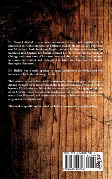 This scholarly study deals with contemporary issues of great significance. Among them are the sources of Islam, the dogmatic and social historical conflict between Christianity and Islam, the new trends in Islam, the ambiguous claims of the Qur'ān. It also discusses the development of the concept of Jihad, what made Islam Universal, and the universal strategy of Islam to subjugate all other religions to the Islamic Law. This book is specific and revealed the hidden agenda and its methodology.
