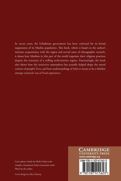 The Uzbekistan government has been criticized for its brutal suppression of its Muslim population. This book, which is based on the author's intimate acquaintance with the region and several years of ethnographic research, is about how Muslims in this part of the world negotiate their religious practices despite the restraints of a stifling authoritarian regime. Fascinatingly, the book also shows how the restrictive atmosphere has actually helped shape the moral context of people's lives, and how understandings of what it means to be a Muslim emerge creatively out of lived experience.
