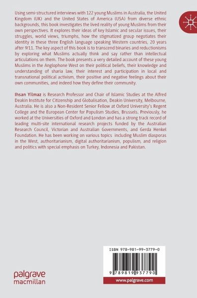 Using semi-structured interviews with 122 young Muslims in Australia, the United Kingdom (UK) and the United States of America (USA) from diverse ethnic backgrounds, this book investigates the lived reality of young Muslims from their own perspectives. It explores their ideas of key Islamic and secular issues, their struggles, world views, triumphs, how the stigmatized group negotiates their identity in these three English language speaking Western countries, 20 years after 9/11. The key aspect of this book is to transcend binaries and reductionisms by exploring what Muslims actually think and say rather than intellectual articulations on them. The book presents a very detailed account of these young Muslims in the Anglophone West on their political beliefs, their knowledge and understanding of sharia law, their interest and participation in local and transnational political activism, their positive and negative feelings about their own communities, and indeed how they definetheircommunity.