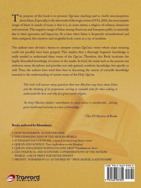 The book Qur'an, Science, and Society is coauthored by two writers: Section one is written by Syed Sharief Khundmiri, who has presented a descriptive analysis of more than two hundred verses of the holy Qur'an, which generated the zeal and will to introduce "Islamic renaissance," which brought mankind out of all kinds of the darkness. While the other section is penned down by Professor Syed Aqeel Ahmed, whose main purpose is to introduce the practical applicability of the Islamic sciences, generated by the "Islamic renaissance," and thus he showed its impact on the society by introducing a few branches of science that are the subject matter of the present-day science.