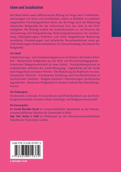 Der Band leistet einen differenzierten Beitrag zur Frage nach Verhältnisbestimmungen von Islam und Sozialisation, indem er Einblicke in qualitativ ausgerichtete Forschungsarbeiten bietet, die der Frage nach der Bedeutung islamischer Religiosität für das Aufwachsen bzw. das 'Sein in der Welt' nachgehen. Die Beiträge richten die Aufmerksamkeit u.a. auf Prozesse der Adressierung und Kategorisierung, Bedeutungsdimensionen der Anerkennung, bildungsbezogene Praktiken und deren biographische Bedeutung, moralische Orientierungen und ästhetische Rezeptionsformen sowie geschlechtsbezogene Rollenverständnisse im Zusammenhang mit islamischer Religiosität.
