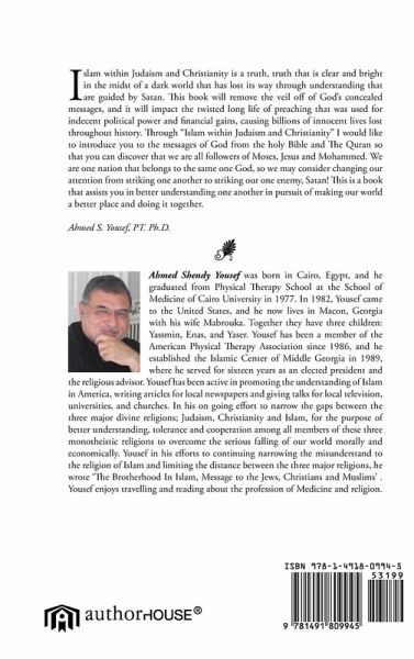 Islam within Judaism and Christianity is a truth, truth that is clear and bright in the midst of a dark world that has lost its way through misunderstands that are guided by Satan. This book will remove the veil off of God's concealed messages, and it will impact the twisted long life of preaching that was used for indecent political power and financial gains, causing billions of innocent lives lost throughout history. Through "Islam within Judaism and Christianity" I would like to introduce you to the messages of God from the holy Bible and The Quran so that you can discover that we are all followers of Moses, Jesus and Mohammed. We are one nation that belongs to the same one God, so we may consider changing our attention from striking one another to striking our one enemy, Satan! This is a book that assists you in better understanding one another in pursuit of making our world a better place and doing it together. Ahmed S. Yousef, PT. Ph.D.