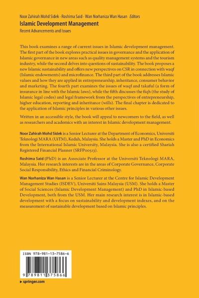This book examines a range of current issues in Islamic development management. The first part of the book explores practical issues in governance and the application of Islamic governance in new areas such as quality management systems and the tourism industry, while the second delves into questions of sustainability. The book proposes a new Islamic sustainability and offers new perspectives on CSR in connection with waqf (Islamic endowments) and microfinance. The third part of the book addresses Islamic values and how they are applied in entrepreneurship, inheritance, consumer behavior and marketing. The fourth part examines the issues of waqf and takaful (a form of insurance in line with the Islamic laws), while the fifth discusses the fiqh (the study of Islamic legal codes) and legal framework from the perspectives of entrepreneurship, higher education, reporting and inheritance (wills). The final chapter is dedicated to the application of Islamic principles in various other issues.
