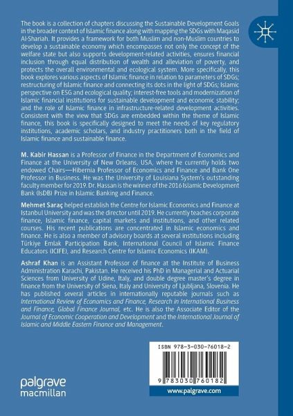 The book is a collection of chapters discussing the Sustainable Development Goals in the broader context of Islamic finance along with mapping the SDGs with Maqasid Al-Shariah. It provides a framework for both Muslim and non-Muslim countries to develop a sustainable economy which encompasses not only the concept of the welfare state but also supports development-related activities, ensures financial inclusion through equal distribution of wealth and alleviation of poverty, and protects the overall environmental and ecological system. More specifically, this book explores various aspects of Islamic finance in relation to parameters of SDGs; restructuring of Islamic finance and connecting its dots in the light of SDGs; Islamic perspective on ESG and ecological quality; interest-free tools and modernization of Islamic financial institutions for sustainable development and economic stability; and the role of Islamic finance in infrastructure-related development activities. Consistent with the view that SDGs are embedded within the theme of Islamic finance, this book is specifically designed to meet the needs of key regulatory institutions, academic scholars, and industry practitioners both in the field of Islamic finance and sustainable finance.¿