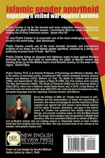 Renowned author, scholar, activist, and journalist, Dr. Phyllis Chesler has been an independent and politically incorrect truth teller for nearly half a century. As a powerful advocate for global women's rights, one who witnessed firsthand the stunning injustices of gender apartheid in Afghanistan during the early 1960s, Phyllis Chesler understands the struggles that Muslim women face in their tribal, patriarchal societies. Her power is her voice, and how she clearly, boldly, and unapologetically uses it to denounce oppression no matter where she sees it--and no matter what the consequences of such truth telling are. In Islamic Gender Apartheid: Exposing a Veiled War Against Women, Dr. Chesler writes with journalistic passion and ease. These pieces are meant for a popular audience and bear frontline moral witness to the normalization of misogynist atrocities in our time. This volume covers a variety of topics, including the burqa and face veil, child marriage, polygamy, honor-based violence, FGM, state-sponsored and vigilante acid disfiguring and stoning, forced female suicide killers, and other injustices that have been minimized or denied by Western media and governments. Here you will find portraits of Muslim and ex-Muslim anti-Islamists who are well known in the West, such as Ayaan Hirsi Ali, Nonie Darwish, and Asra Nomani, and less known, but extraordinary women heroes in the Middle East, Central Asia, and the Far East, who have risked death as they defied the bans on trouser-wearing, forced face-veiling, remaining in a violent marriage, choosing their own religion, and facing harassment and death for the right to work outside the home. This volume is a tremendous service to history - a witness at the critical time when women s rights will either advance worldwide, or the hard-won gains of western women will begin to erode due to the thoughtless mass acceptance of multiculturalism. Relevant, thoughtful, informative, Islamic Gender Apartheid: Exposing a Veiled War Against Women is a compelling journalistic account of our perilous times from an award-winning author and scholar.