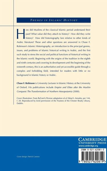 Chase Robinson's book offers a well-composed and timely introduction to Islamic historiography from its origins in the seventh century to the fifteenth. The book covers the rise of the tradition, the historians' principal genres, assumptions and methods, and stresses the social and political functions of historical writing.