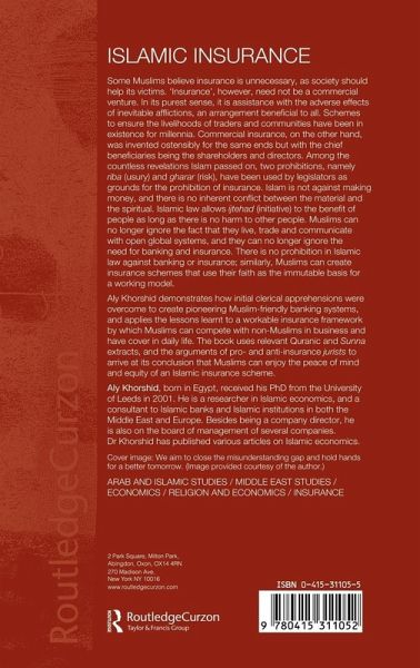 Some Muslims believe insurance is unnecessary, as society should help its victims. Muslims can no longer ignore the fact that they live, trade and communicate with open global systems, and they can no longer ignore the need for banking and insurance. Aly Khorshid demonstrates how initial clerical apprehensions were overcome to create pioneering Muslim-friendly banking systems, and applies the lessons learnt to a workable insurance framework by which Muslims can compete with non-Muslims in business and have cover in daily life. The book uses relevant Quranic and Sunnah extracts, and the arguments of pro- and anti-insurance jurists to arrive at its conclusion that Muslims can enjoy the peace of mind and equity of an Islamic insurance scheme.