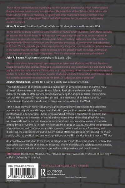 The expression of an Islamic political radicalism in Britain has been one of the most dramatic developments in recent decades. Islamic Radicalism and Multicultural Politics explores the nature of this phenomenon by analysing the origins of Islam and its historical contact with Western Europe and Britain, and the emergence of Islamic political radicalism in the Muslim world and in the West. Tahir Abbas draws on historical analysis and contemporary case studies to explore the post-war immigration and integration of Muslim groups, the complex relations that exist between a secular liberal Britain and a diverse but multifaceted Islam, and the extent of social and economic inequalities that affect Muslims as individual citizens and in local area communities. He shows how violent extremism among British Muslims is in reality influenced by a range of issues, including the factors of globalisation and contemporary politics, media and culture. Analysing and dissecting public policy, Abbas offers suggestions for tackling the major social, political and economic questions facing British Muslims in the post-7/7 era. An important contribution to the study of religion, 'race' and ethnicity in modern Britain, this accessible work will be of interest to anyone working in the field of Islamic studies, sociology and political radicalism. Cover design by Mahtab Hussain, www.mahtabhussain.com
