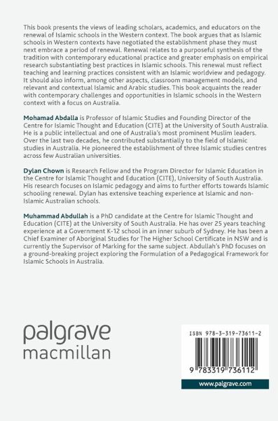This book presents the views of leading scholars, academics, and educators on the renewal of Islamic schools in the Western context. The book argues that as Islamic schools in Western contexts have negotiated the establishment phase they must next embrace a period of renewal. Renewal relates to a purposeful synthesis of the tradition with contemporary educational practice and greater emphasis on empirical research substantiating best practices in Islamic schools. This renewal must reflect teaching and learning practices consistent with an Islamic worldview and pedagogy. It should also inform, among other aspects, classroom management models, and relevant and contextual Islamic and Arabic studies. This book acquaints the reader with contemporary challenges and opportunities in Islamic schools in the Western context with a focus on Australia.