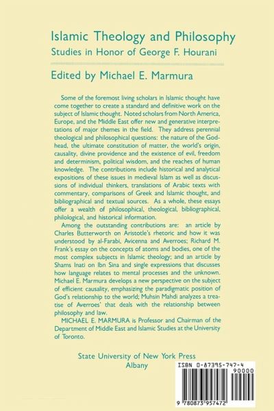 Some of the foremost living scholars in Islamic thought have come together to create a standard and definitive work on the subject of Islamic thought. Noted scholars from North America, Europe, and the Middle East offer new and generative interpretations of major themes in the field. They address perennial theological and philosophical questions: the nature of the God-head, the ultimate constitution of matter, the world's origin, causality, divine providence and the existence of evil, freedom and determinism, political wisdom, and the reaches of human knowledge, The contributions include historical and analytical expositions of these issues in medieval Islam as well as discussions of individual thinkers, translations of Arabic texts with commentary, comparisons of Greek and Islamic thought, and bibliographical and textual sources. As a whole, these essays offer a wealth of philosophical, theological, bibliographical, philological, and historical information. Among the outstanding contributions are: an article by Charles Butterworth on Aristotle's rhetoric and how it was understood by al-Farabi, Avicenna and Averroes; Richard M. Frank's essay on the concepts of atoms and bodies, one of the most complex subjects in Islamic theology; and an article by Shams Inati on Ibn Sina and single expressions that discusses how language relates to mental processes and the unknown. Michael E. Marmura develops a new perspective on the subject of efficient causality, emphasizing the paradigmatic position of God's relationship to the world; Muhsin Mahdi analyzes a treatise of Averroes' that deals with the relationship between philosophy and law.