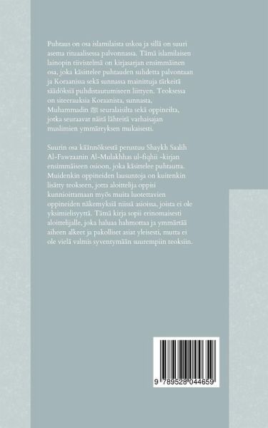 Puhtaus on osa islamilaista uskoa ja sillä on suuri asema rituaalisessa palvonnassa. Tämä islamilaisen lainopin tiivistelmä on kirjasarjan ensimmäinen osa, joka käsittelee puhtauden suhdetta palvontaan ja Koraanissa sekä sunnassa mainittuja tärkeitä säädöksiä puhdistautumiseen liittyen. Teoksessa on siteerauksia Koraanista, sunnasta, Muhammadin seuralaisilta sekä oppineilta, jotka seuraavat näitä lähteitä varhaisajan muslimien ymmärryksen mukaisesti. Suurin osa käännöksestä perustuu Shaykh Saalih Al-Fawzaanin Al-Mulakhhas ul-fiqhii -kirjan ensimmäiseen osioon, joka käsittelee puhtautta. Muidenkin oppineiden lausuntoja on kuitenkin lisätty teokseen, jotta aloittelija oppisi kunnioittamaan myös muita luotettavien oppineiden näkemyksiä niissä asioissa, joista ei ole yksimielisyyttä. Tämä kirja sopii erinomaisesti aloittelijalle, joka haluaa hahmottaa ja ymmärtää aiheen alkeet ja pakolliset asiat yleisesti, mutta ei ole vielä valmis syventymään suurempiin teoksiin.