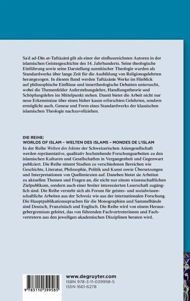 Sa´d ad-Din Taftazani gilt als einer der einflussreichsten Autoren in der islamischen Geistesgeschichte des 14. Jahrhunderts. Seine theologische Einführung sowie seine Darstellung sunnitischer Theologie wurden als Standardwerke über lange Zeit für die Ausbildung von Religionsgelehrten herangezogen. In diesem Band werden Taftazani Werke im Hinblick auf philosophische Einflüsse und innertheologische Debatten untersucht, wobei die Themenfelder Auferstehungslehre, Handlungstheorie und Schöpfungslehre im Mittelpunkt stehen. Damit bietet die Arbeit nicht nur neue Erkenntnisse über einen bisher kaum erforschten Gelehrten, sondern ermöglicht auch, Genese und Form eines Standardwerks der klassischen islamischen Theologie nachzuvollziehen.