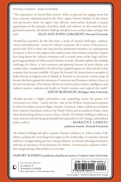 The Islamist Challenge and Africa examines Islamist militancy among Africans historically and at present, a topic largely ignored in the United States. It examines Islamist militancy's longstanding presence in Africa and its diaspora, Islamist militancy's distinct ideological features among Africans, and ways to minimize its violence.