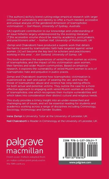 "Since 9/11 acts of hate directed at Muslim communities have become one of contemporary society's most significant social issues. Drawing upon their own ground-breaking research, renowned experts Zempi and Chakraborti have produced a superb work that details the harms caused by Islamophobic faith hate targeted against veiled women. Their findings, brilliantly outlined here, offer new and important insights into the nature and impact of gendered aspects of Islamophobia and exemplify why Islamophobia, Victimisation and the Veil will become the key text for scholars and practitioners working in this area." - Jon Garland, University of Surrey, UK