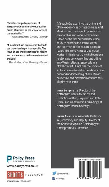 Islamophobia examines the online and offline experiences of hate crime against Muslims, and the impact upon victims, their families and wider communities. It includes the voices of victims themselves which leads to strategies for future prevention.